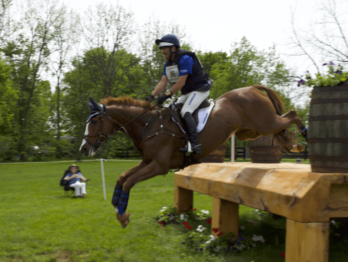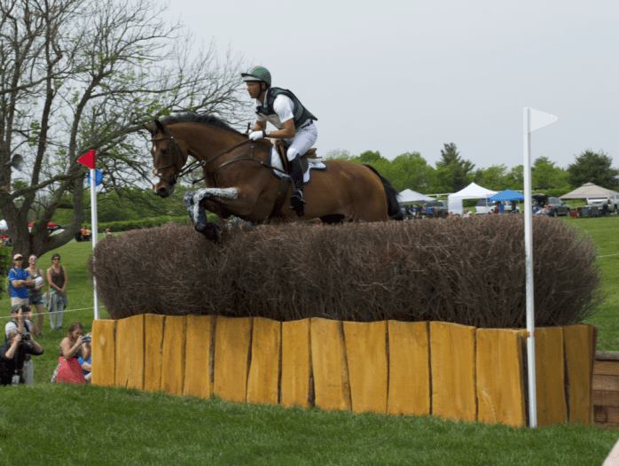I was able to squeeze into a pretty good spot to grab some media, but after a few horses, the girls and I were done with crowds and headed over to the Whiskey Barrel table. That thing was giant. A horse in full jump from a run spanned the breadth of the table as you can see with the picture of Tim Price below. It was wider than I am tall – which is 5’5″. Something else that I will never jump over in my life.