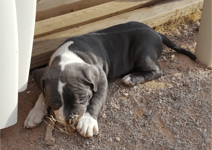 After that I rushed home to see my sister who brought over the most adorable pitbull puppies. My sister’s boyfriend’s pit is gorgeous and sweet as could be, and his first litter is now 5 weeks old! All of the pups are blue and adorable.