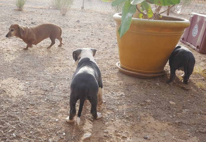 When 5 week old pitbull puppies are as big as a Dachshund….