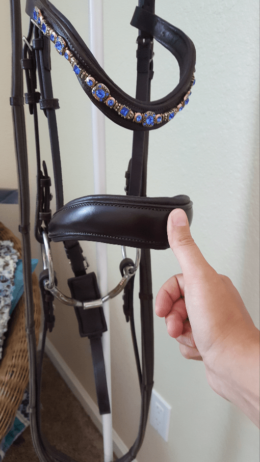 The elastic “cradle” in the photo above is one of the features I was really eager to try. It helps to suspend the bit in the mouth so the weight of the bit isn’t pulling on the poll. I don’t think the cradle is dressage legal, but it’s a super cool feature. So far as I can tell, Amber has been even softer with the bit on this cradle. But, I’ll probably take it out when I show just in case someone objects.