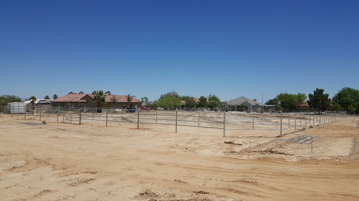 The guys left shortly after 1 when all the holes were filled. I had planned to ride after but that had to take a backseat to the heat. It was only supposed to be 95 but it had climbed up to 101 by 2 and it was still 97 with 6% humidity at 5. We had an excessive heat warning from 11 am to 11 pm. Yay. And I live in the desert why again…? But the guys came back around 6 to cement the arena posts and then set out the panels into the shape of the barn to make it easier to assemble this morning. Looks amazing to me!
