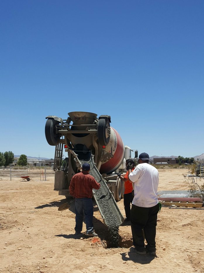The cement truck finally arrived shortly before I got home, so I got to see them pack the holes and smooth them. My mom and I had originally thought that they’d cement the poles in the concrete but they are actually using anchor plates so they can make sure the barn is completely level. So, it was hurry up and get the cement in, then wait the rest of the day/night for it to cure.