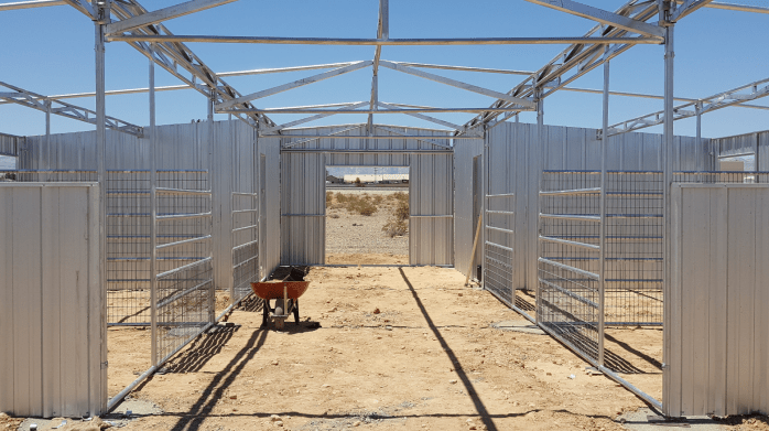 They of course had to measure and make sure everything was square and to the right measurements. So far, we’re really happy with these guys. They’ve been very thorough and precise. Unfortunately one of them got sick very early on and the weather took an extensive toll on another worker. The remaining three guys worked through the afternoon, even though the temps were 104+. Because they’ve been down two guys, the boss is coming down to help and they may have to finish everything next week. Most of the grunt work is done; it’s the cutting of the arena posts and capping them; it’s the welding and the roof and the sliding doors; it’s the final checks that need to be done. Then it’s a few days for the inspectors to send in paperwork. Which sets back bringing the horses over, but it is what it is. It’s happening, and that’s all that matters.