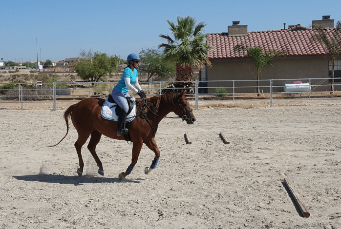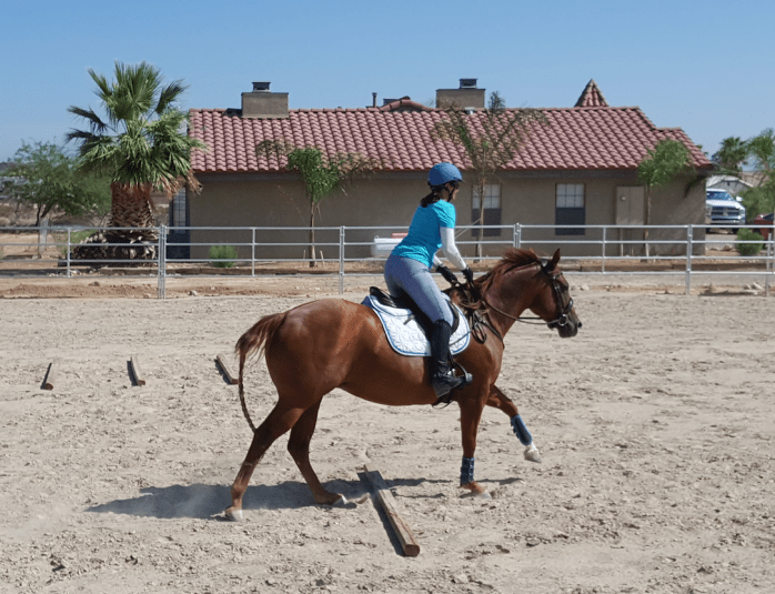 She’s been showing some real progress, able to turn in better balance and understanding what we’re starting to do. I’ve let her figure out her feet and she’s been very relaxed when the striding hasn’t been perfect. Before she would get pretty nervous about it, and I really think those cavaletti sessions really got her more comfortable with needing to use the different parts of her body.