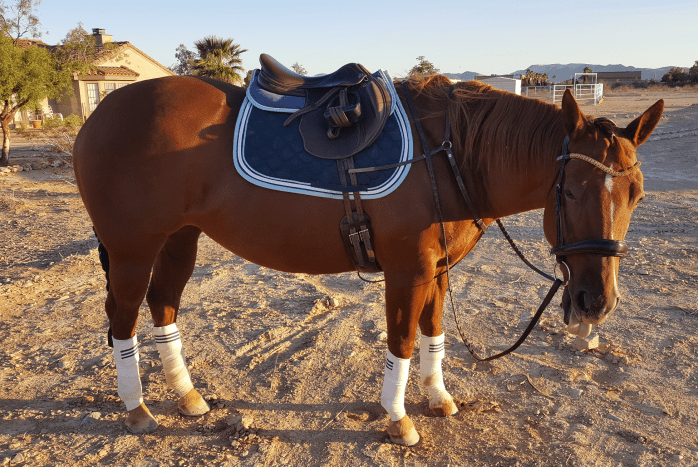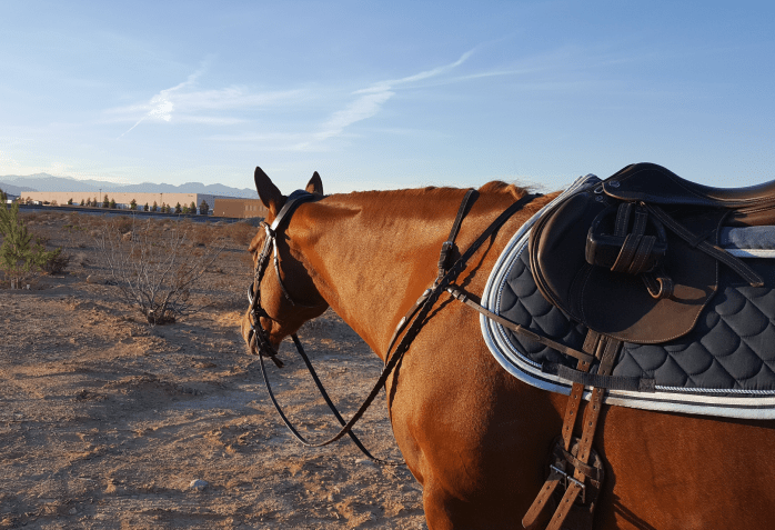 We took our usual hack after a tough jumping day, and after massaging her again (did a bit the previous evening) and doing a few stretches we headed out. This was probably the best she’s ever been going around the desert. She’s never been bad before, but this time she kept up that long, easy walk I’ve been working towards in the arena. She just sauntered out there, and I think she’s realizing it’s becoming a routine and that she also really likes going out there. She wants something to focus on, and this time we did the itsy bitsy ditch the other way. She looked down, was confused for perhaps a second, then seemed to shrug and did this teensy arc over the ditch and then settled right back down like we’d been doing it all week.