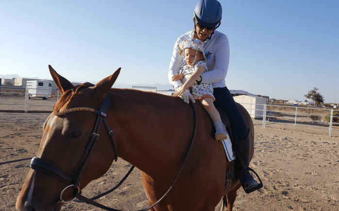 Amber absolutely adored her. Just wanted to sniff her and was like OMG LET ME HAVE THAT TINY HUMAN lol. Just loved her. Kaylee flittered around Amber’s legs and that mare kept both ears on her and barely moved a muscle the whole time Kaylee played around. I was so proud of Amber.