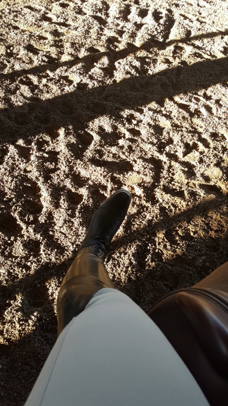 So for the next lesson I planned to switch it up and chose my only pair of full seat Pipers. They’re a thinner breech, but not made for hot weather like my Grand Prix breeches , and it was a lovely, warm sunny day so they were perfect. I debated whether or not to wear my brown boots, but decided to finally break out my black boots that I’d gotten on the Black Friday sale and try them with some new socks. The day before my next lesson I ended up popping by the local tack store for a dressage whip.