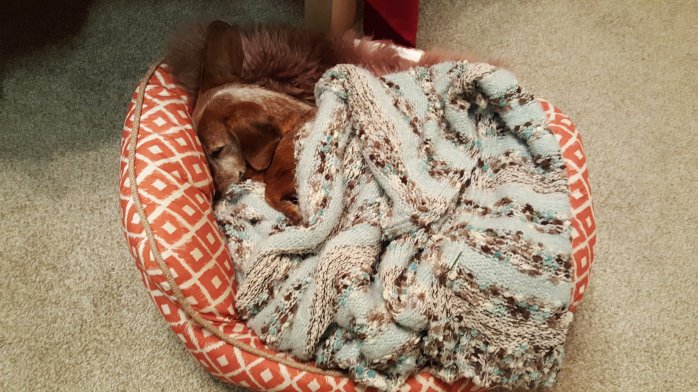 One more of a snuggly dachshund. She loves her wool pillow cover as a base for her bed ❤