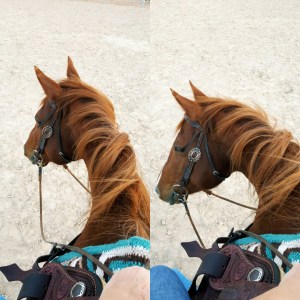 I know Amber misses riding as do I, but I’m taking it really slow in terms of riding. I’ve looked back through memories, and put together that when she started grinding her teeth was most likely around the time her laminitis was really bad, and it was around that time I took to hand walking instead of riding since I didn’t want and was hoping that she wouldn’t associate riding with pain. Since her foot has grown a lot of sole and we’ve moved to the cloud boots, I’ve saddled her up a few times, but she’s been very wary when I throw that saddle on. So I do think she associates riding with being in pain, but as usual she shows her discomfort very subtly. So I’ve been going slow, making sure I’m riding western, and playing around with a few buttons but trying to make her understand these are in no way training rides.