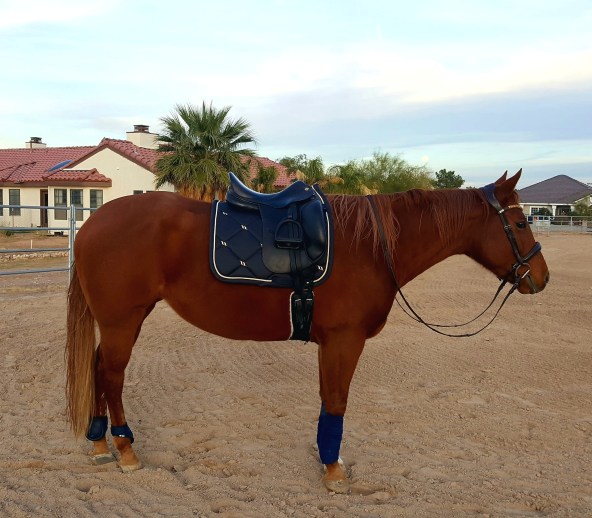 I did get to ride this Tuesday/Wednesday, though Tuesday was an odd/funny ride. She BUCKED. Haha! This horse hasn’t bucked with me since she was barely 2 and something startled her lol! But we cantered, we were okay for 2 strides, then she full on bucks, and not a little crow hop either! She really tipped me onto her neck. I did get after her a smidge – I love her to death but bucking is not allowed. However, she got the point across to me that something wasn’t right. I asked her to canter (right lead) again, and she did, held it together, but boy she was unhappy and her ears were pinned back. That’s never happened either, so I switched leads, and she was so wonky and uncomfortable cantering to the left with, you guessed it, her ears pinned. So I checked all our stuff before lightbulb going off of “oh this saddle looks way further back than we started…”
