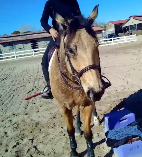 As the week went on between my last lesson and my Feb 1 lesson, I kept remembering how well the line rode (tho still not perfect) when I sat up and back in between the fences. So, I made that my goal for this next lesson, with my leg, mentality, and all the other things I’d made a note of last time a priority for this one too.