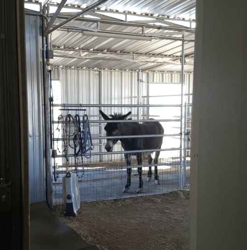 Has anyone ever mentioned how smart burros are? Well, they’re smart. And she was not going in there, no-sir-ee. Even after tapping her on the butt with a lead rope. Nope. She’d just stand there with a leg cocked and let us lightly tap her. She knew we weren’t going to hurt her, and she’d just look at us like “No thanks. I don’t want to” with those big brown eyes.