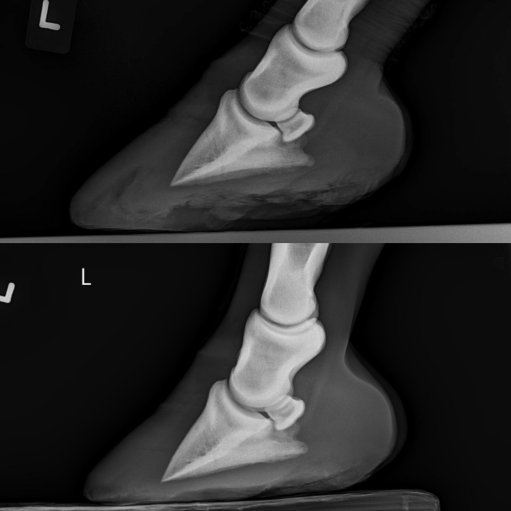 Seeing where her coffin bone is now makes a lot of sense. My spidey sense have been tingling, which is why I made the appointment in the first place. The angles just kept looking off, she was cocking that left leg more often, shifting her weight a little more often, starting to keep her left hind more forward than her right as she eats (which isn’t her go-to position) – all due to very little sole growth and strain. When I saw the underside of her foot, I knew I needed an appointment so I’m glad my suspicions were right. I’m not sure whether it’s fortunate or not that she’d be better with shoes on her hinds (I’m thinking fortunate lol), but we’re thinking she just really wore down the sole that she’d grown even for those 12 hours her foot was out of the boot.