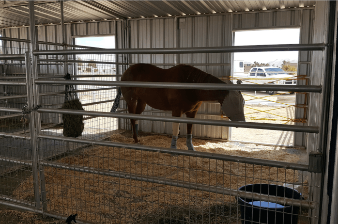 As much as she’s being a funny girl and pushing her door open to get out of the stall, she seems content to rest. The surgery was stressful, and she’s definitely been calmer here than at the clinic. While she finally seems content to rest, I think she is starting to feel better. Not only has she been less destructive, but she’s just seemed a little happier as well. I’ve noticed that she’s still careful bringing forward that right hind leg after standing for a while, but I’ve been really trying to be observant of her facial expressions and I think that stifle is feeling better. It’s difficult to explain, but her expressions when she’s doing just the little bit of walking around her stall look happier. She’s even started to “reach” a little more! (as in she doesn’t short that leg walking over the bar out of her stall which granted she’s only done once lol small victories right?) I’ve added some U-Guard pellets to her grain as well, thinking why not because my mom had them, and I think that’s been making a big difference in her feeling better as well. Thanks everyone for crossing their crossables and keeping us in your thoughts! She’s been much happier I think, and I’m hopeful that we’ll come back well from this.