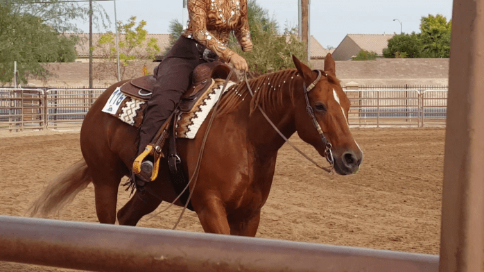 I actually started to show in the bridle due to the rules of the Ranch Riding and Western Dressage classes that were part of the requirements to win a buckle. In those classes it is against the rules to have any type of sparkle on your gear. This was an open and local show, and considering that horses were competing in numerous other classes (pleasure, horsemanship, trial) back to back we were allowed to wear bling shirts (though I did dress down for WD) and have bling on our tack if that’s all we had and we didn’t have a break to change. Since my saddle doesn’t have any silver and I had a nice looking bridle that matched pretty well, the Cashel one-ear became my show bridle.