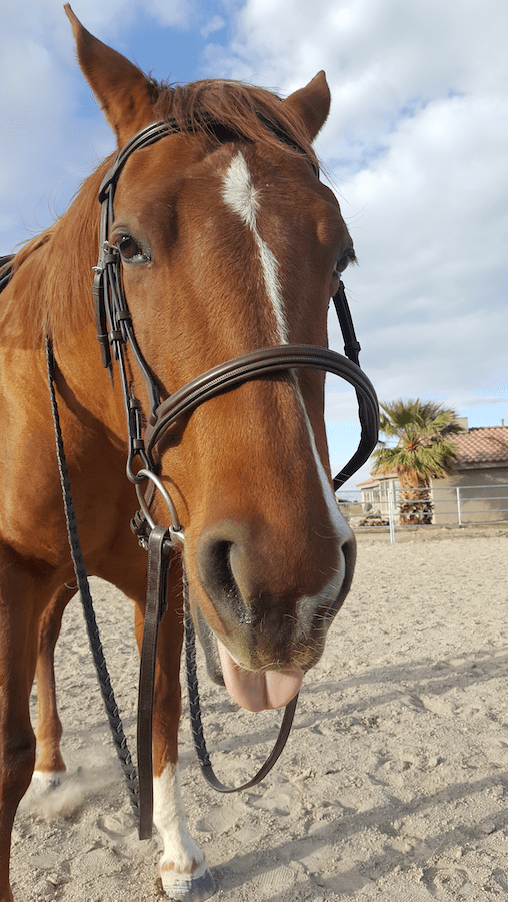 The noseband wasn’t changed, as stated in the product’s description, and this was the part that had me more concerned than others. Amber was transitioning from western to English, and I’d never put a noseband on her before. Perhaps this doesn’t seem as concerning to others as it did to me, but this was after I had read quite a few articles about nosebands – especially tight nosebands – causing tension and increased heart rate in horses. I didn’t think the noseband was going to be a problem though. I was thinking that full-size bridles still come with a good amount of leather, so she should be fine. But I could barely get the noseband on the second hole, and after only 5 minutes of riding I could tell that Amber was bothered by something. I loosened the noseband to the loosest hole, and she was much more comfortable after that. Because I could barely close the noseband, I found the 4 keepers on the noseband strap so cumbersome I ended up cutting one off. The strap with the 4 keepers also had padding on it, so that also cut down on noseband space I could use, though I can completely understand that the keepers were to keep a very slim look.