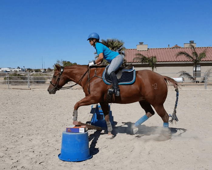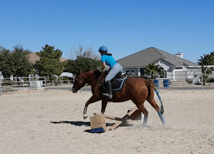 I’m not too sure why she stopped, other than perhaps she was just feeling “meh” about it, but as you can see she still went over just fine. You can’t see in the video but I gave her a few little taps with my heels and some clucks, and she walked on over. Turns out that’s really all that’s needed to tell her stopping isn’t necessarily an option because our next attempt looked like this: