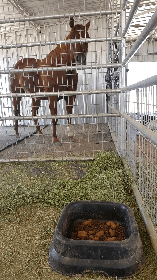 So I gave her two grams of bute – which I am ecstatic that she ate because usually she gives me this look like “how dare you attempt to sneak that icky-ness into my food mother”. But she slurped it up and even licked the pan clean. Pretty sure she got all of it! I also stuck some liniment on her legs and while she doesn’t mind it on the front legs, she was not a fan of the hind legs.